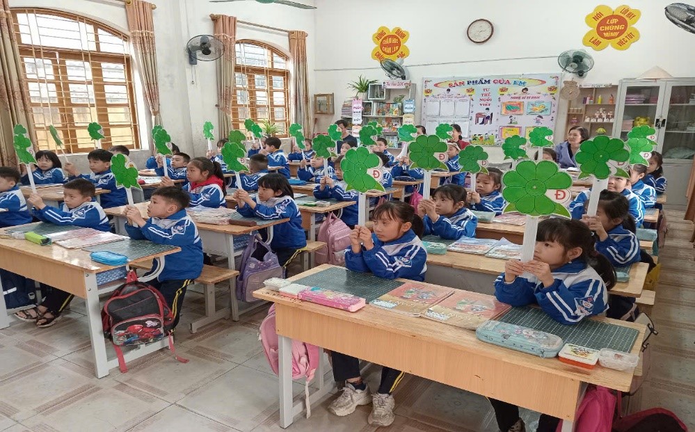 Cô giáo Nguyễn Thị Hồng Trang và các em học sinh lớp 4B đã thực hiện thành công chuyên đề: "Dạy học phân hóa đối tượng học sinh thông qua giờ dạy LTVC lớp 4".