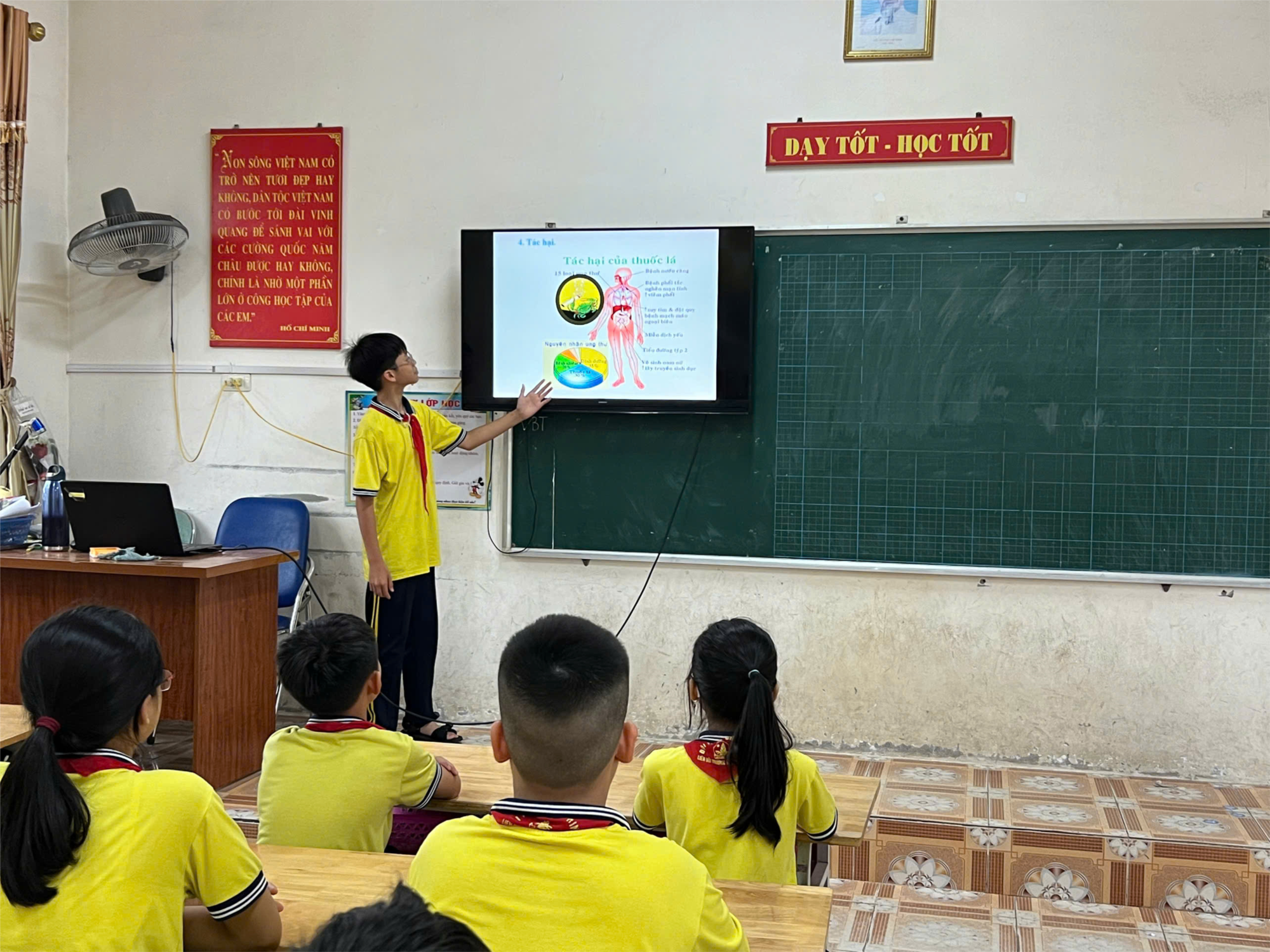 Thực hiên công văn số 209/GDĐT ngày 5/5/2025 v/v tổ chức hoạt động hưởng ứng ngày Thế giới không thuốc lá 31/5, Tuần lễ quốc gia không khói thuốc lá 25-31/5/2025 và tăng cường thực thi Luật Phòng, chống tác hại của thuốc lá. Trường TH Đại Bản 2 đã tổ chức các buổi sinh hoạt tập thể tại các lớp tuyên truyền tác hại của thuốc lá, thuốc lá điện tử, luật phòng chống tác hại của thuốc lá, quyền nghĩa vụ của mỗi công dân trong công tác phòng chống tác hại của thuốc lá. Hi vọng sau buổi tuyên truyền các thầy cô giáo sẽ có thêm hiểu biết và biết cách phòng chống tác hại của thuốc lá.