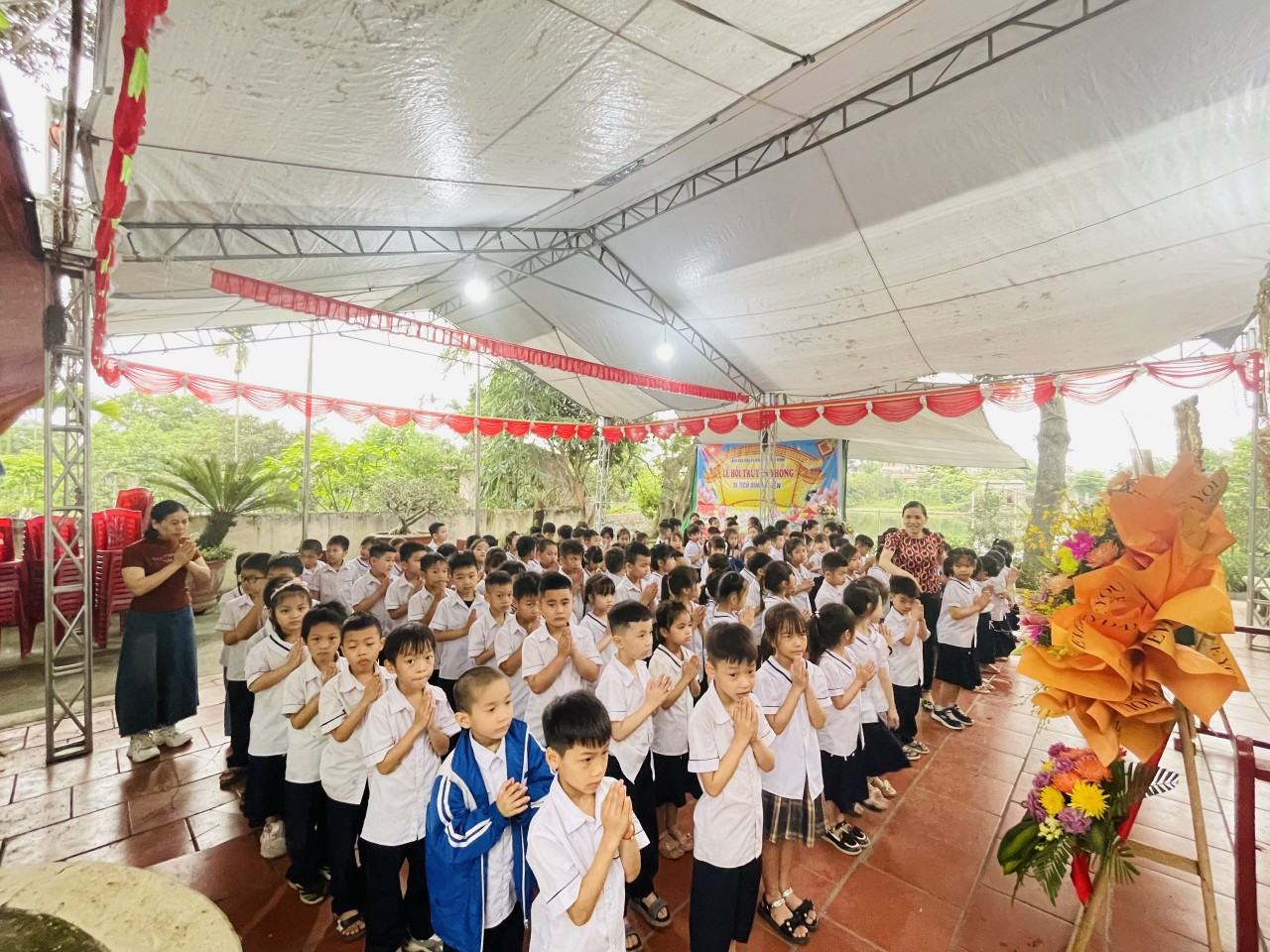 * Với tấm lòng thành kính trước tấm gương trung liệt và đạo lý Uống nước nhớ nguồn, ghi tạc công ơn to lớn của các danh tướng họ Phạm đã anh dũng hy sinh vì độc lập, tự do của Tổ Quốc, các cô giáo và các em học sinh đã thành tâm thắp nén tâm nhang trước bàn thờ tướng quân.