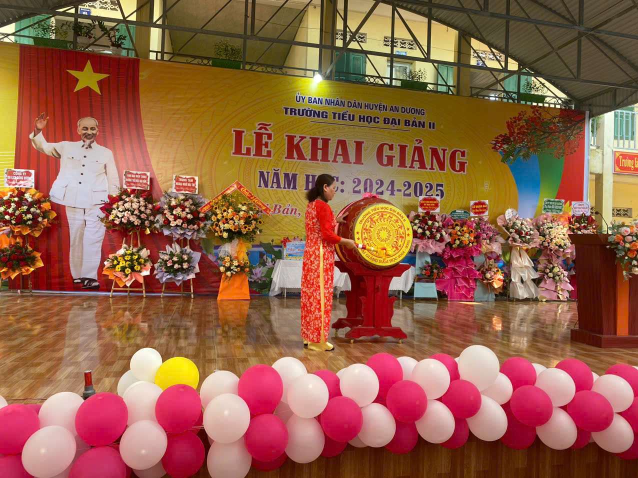 * Thực hiện Công văn số 2246/UBND-GDĐT ngày 28/8/2024 của Ủy ban nhân dân huyện An Dương về triển khai một số hoạt động đầu năm học 2024-2025; Sáng nay, sáng 5/9, hòa chung với niềm vui chung của cả nước, trường Tiểu học Đại Bản II tổ chức Lễ khai giảng năm học mới 2024 - 2025, ngày toàn dân đưa trẻ đến trường” với chủ đề năm học “Kỷ cương trách nhiệm, đổi mới sáng tạo, nâng cao chất lượng giáo dục và đào tạo”.