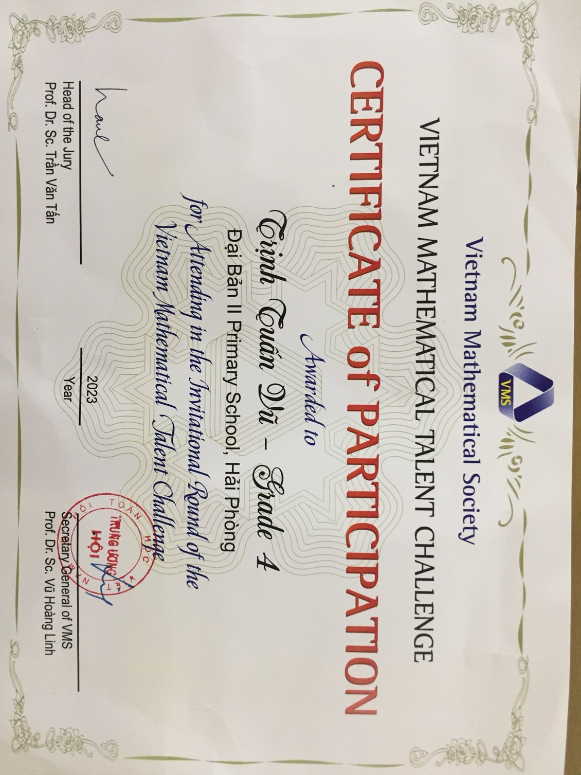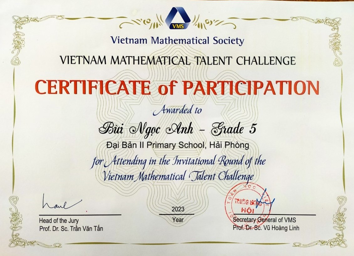 Với mục tiêu phát hiện và cổ vũ các năng khiếu toán học trong lứa tuổi học sinh và góp phần đẩy mạnh phong trào học toán ở các trường phổ thông, Hội Toán học Việt Nam tổ chức Cuộc thi Thách thức tài năng Toán học Việt Nam (Vietnam Mathematical Talent Challenge, viết tắt VMTC). Cuộc thi này dành cho học sinh từ lớp 3 tới lớp 9 các trường phổ thông trên phạm vi cả nước. Hưởng ứng tinh thần đó, các em học sinh trường Tiểu học Đại Bản II đã tích cực tham gia dự thi. Vinh dự cho nhà trường đã có 3 học sinh xuất sắc vượt qua cả nghìn thí sinh để tham dự vòng thi chung khảo được tổ chức tại Trường Đại học Khoa học Tự nhiên, Đại học Quốc gia Hà Nội, 334 Nguyễn Trãi, Thanh Xuân, Hà Nội.