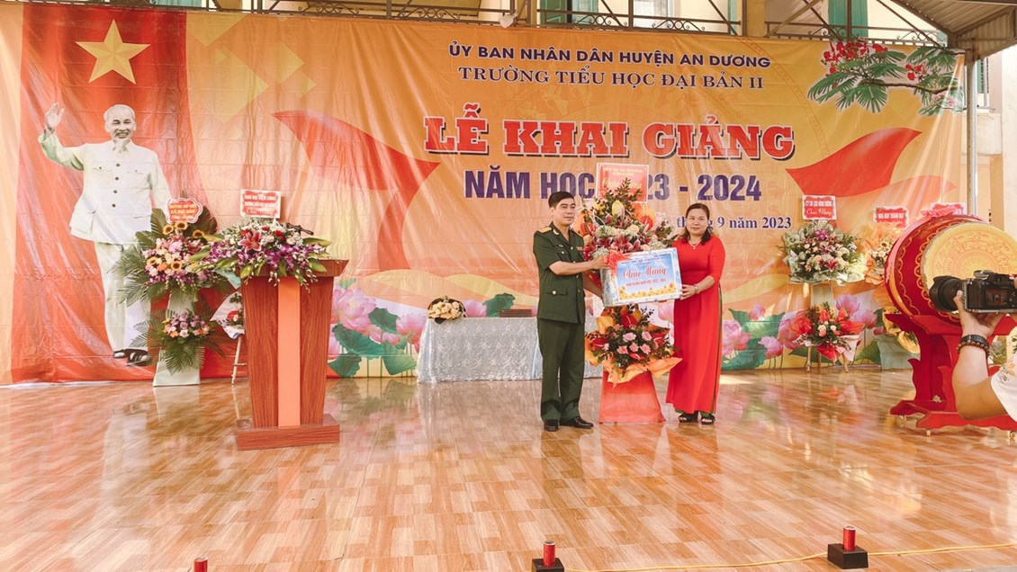 Lễ khai giảng thành công tốt đẹp trong tiếng trống khai trường hân hoan của cô Hiệu trưởng Nguyễn Thị Chi. Trong buổi lễ, nhà trường và các em học sinh được đón nhận những lẵng hoa, những món quà ý nghĩa, những suất khen thưởng cho HS giỏi các cấp của Hội khuyến học xã, những suất quà cho HS có hoàn cảnh khó khăn do địa phương, các doanh nghiệp tài trợ,...lên đến hơn 10 triệu đồng. Nhà trường xin chân thành cảm ơn sự quan tâm của các đồng chí lãnh đạo, các bậc phụ huỵnh, các đơn vị, cơ quan, doanh nghiệp. Chúc cho thầy trò trường TH Đại Bản II một năm học mới thành công.